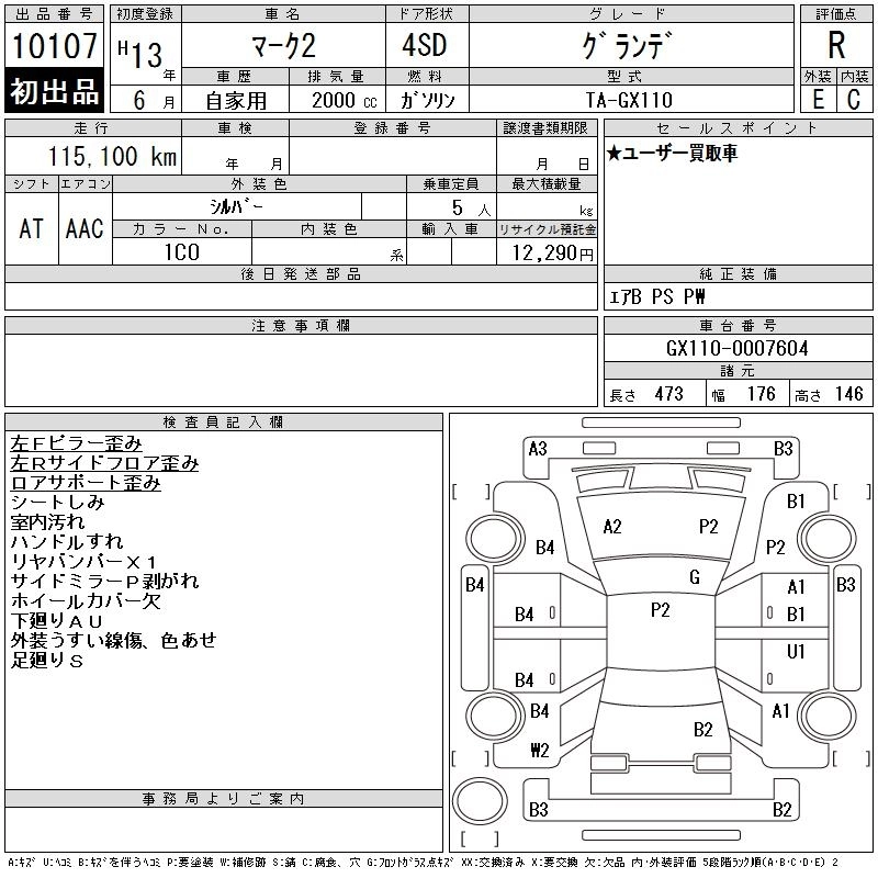 | GRANDE REGALIA | TA-JZX110 | 1JZ-FSE | FR | 4AT | 2491cc | 200ps(147kW)/6000rpm | AИ-95 | 2 840 000 | |