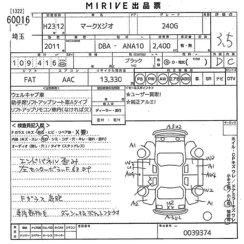| 240G AEROTOURER S | DBA-ANA10 | 2AZ-FE | FF | CVT | 2362cc | 163ps(120kW)/6000rpm | AИ-92 | 3 189 000 | |