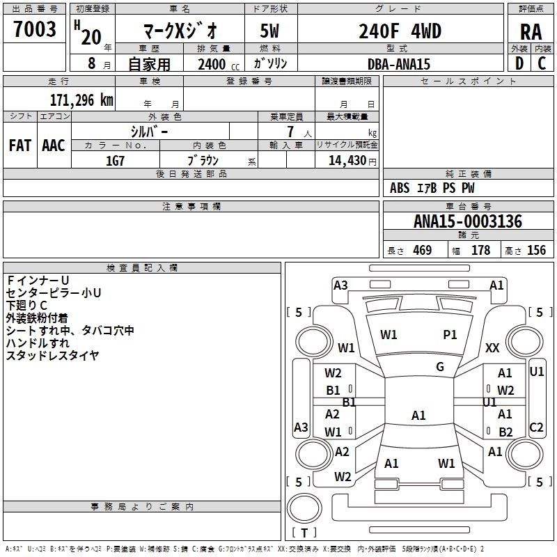 240G DBA-ANA15 2AZ-FE Full-time 4WD CVT 2362cc 163ps(120kW)/6000rpm AИ-92 2 990 000