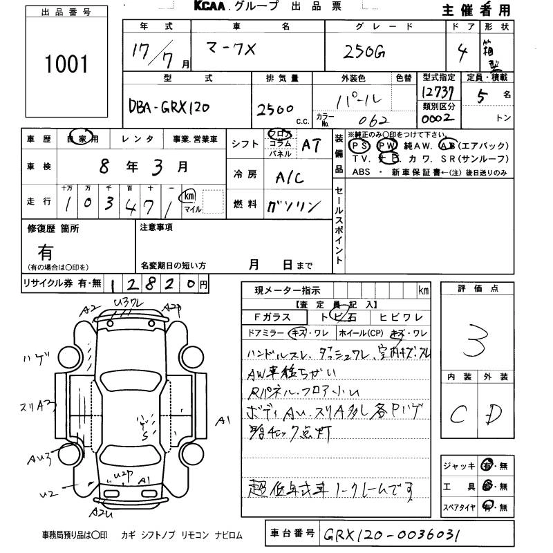 Статус продан Лот 1001 Аукцион KCAA Fukuoka Дата аукциона 29.01.2026
