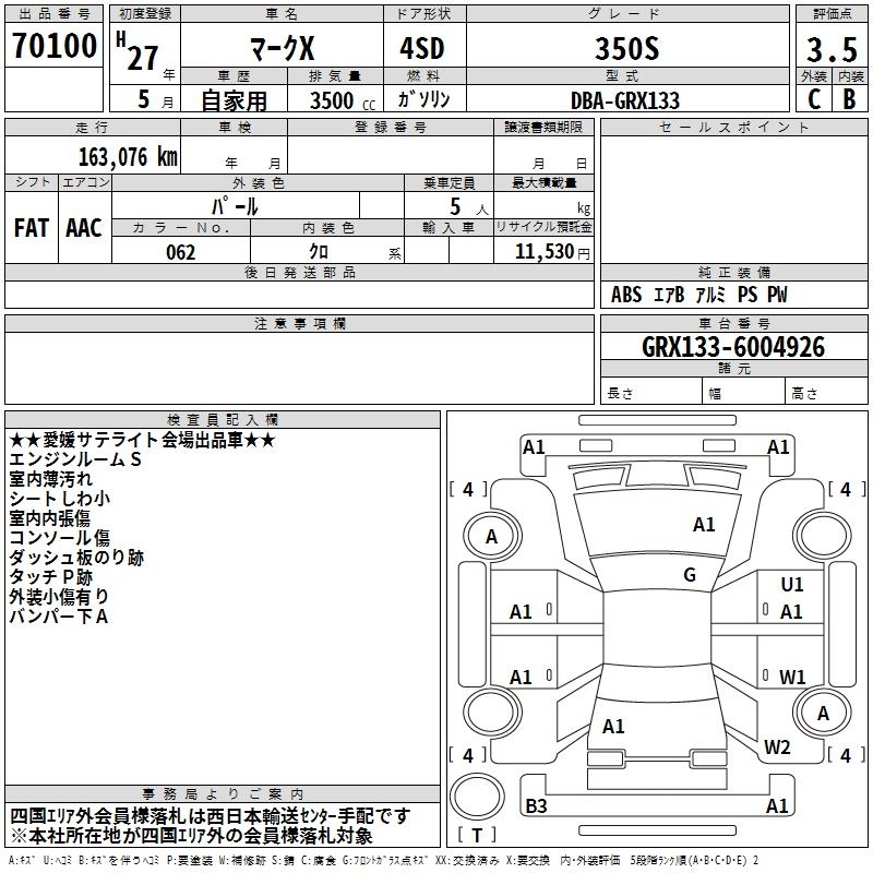 | GRMN | DBA-GRX133 | 2GR-FSE | FR | 6MT | 3456cc | 321ps(236kW)/6400rpm | AИ-95 | 5 400 000 |