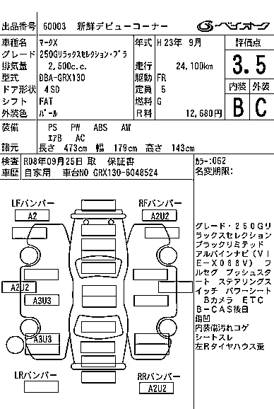 | 250G RELAX SELECTION BLACK LEATHER LIMITED | DBA-GRX130 | 4GR-FSE | FR | 6AT | 2499cc | 203ps(149kW)/6400rpm | AИ-92 | 2 980 000 |
