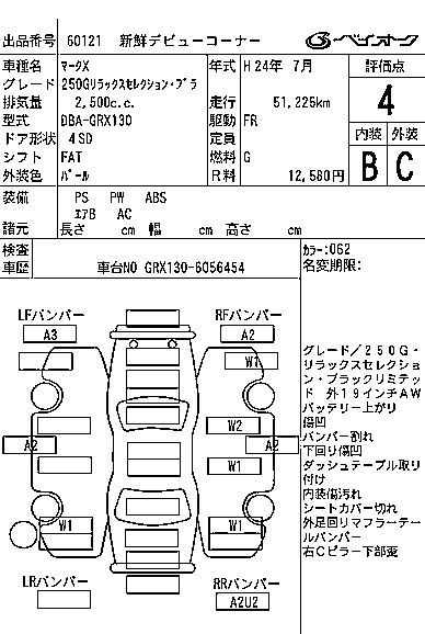 TOYOTA MARK X 2012 г., лот № 60121