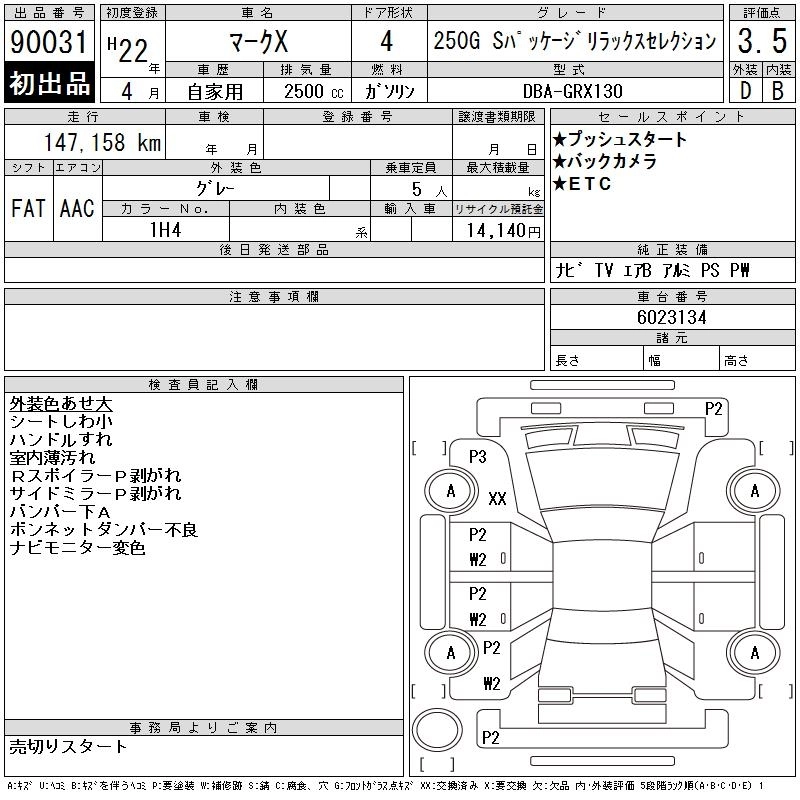 | 250G RELAX SELECTION BLACK LIMITED | DBA-GRX130 | 4GR-FSE | FR | 6AT | 2499cc | 203ps(149kW)/6400rpm | AИ-92 | 2 750 000 |