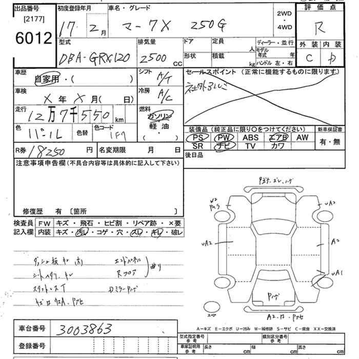 | 250G FOUR F PACKAGE LIMITED | DBA-GRX125 | 4GR-FSE | Full-time 4WD | 5AT | 2499cc | 215ps(158kW)/6400rpm | AИ-95 | 2 961 000 | |