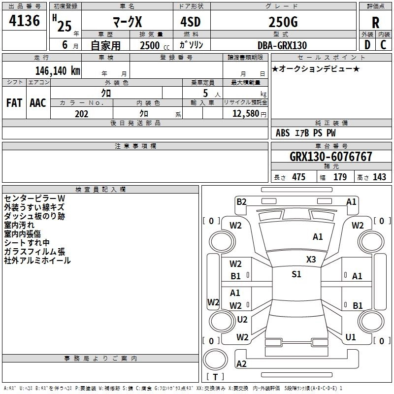 TOYOTA MARK X 2013 г., лот № 4136