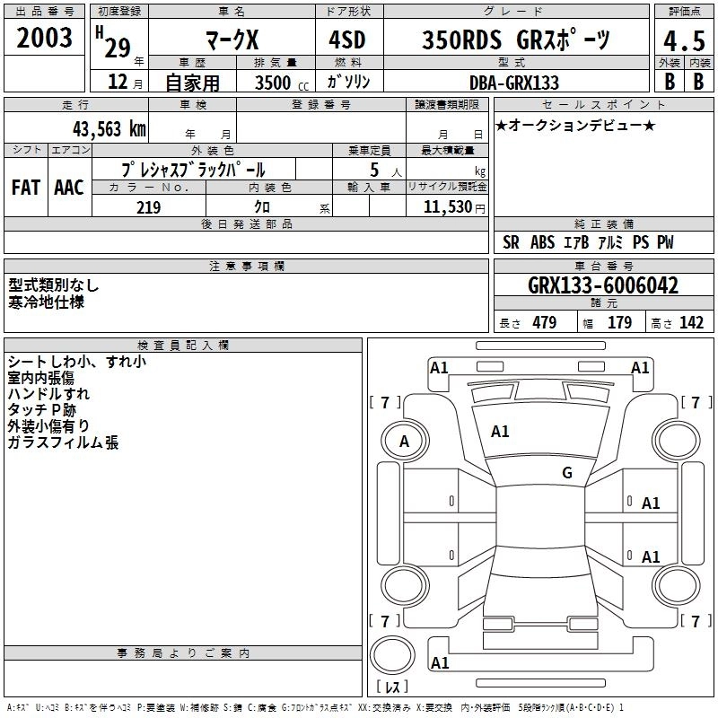 | 350RDS GR SPORT | DBA-GRX133 | 2GR-FSE | FR | 6AT | 3456cc | 318ps(234kW)/6400rpm | AИ-95 | 4 428 000 | |