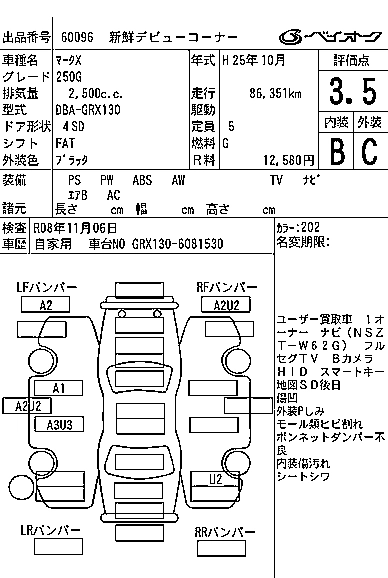 | 350S GS CARBON ROOF VER | DBA-GRX133 | 2GR-FSE | FR | 6AT | 3456cc | 318ps(234kW)/6400rpm | AИ-95 | 4 450 000 | |