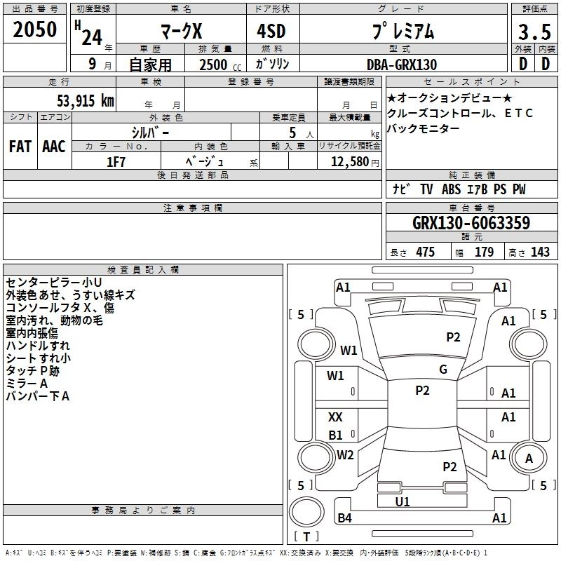 | PREMIUM FOUR | DBA-GRX135 | 4GR-FSE | Full-time 4WD | 6AT | 2499cc | 203ps(149kW)/6400rpm | AИ-92 | 3 151 000 | |