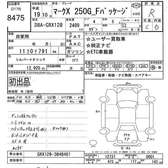 | 250G LIMITED | DBA-GRX120 | 4GR-FSE | FR | 6AT | 2499cc | 215ps(158kW)/6400rpm | AИ-95 | 2 782 500 |
