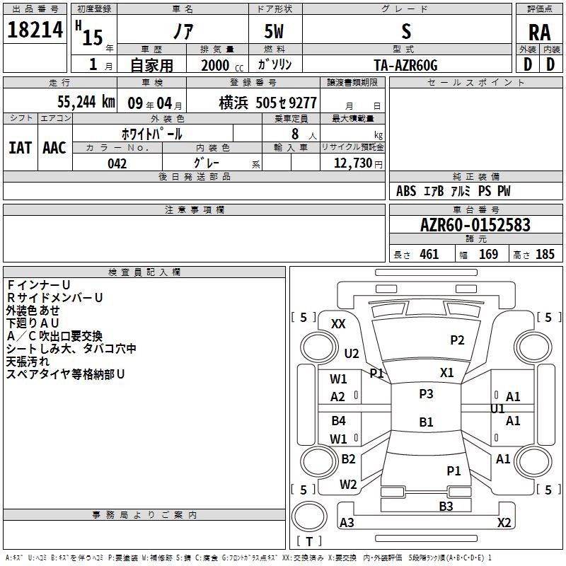 | X V SELECTION | TA-AZR60G | 1AZ-FSE(D-4) | FF | 4AT | 1998cc | 152ps(112kW)/6000rpm | AИ-92 | 2 027 000 | |