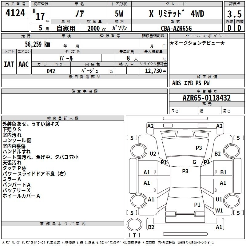 | YY | DBA-AZR65G | 1AZ-FSE(D-4) | Full-time 4WD | CVT | 1998cc | 155ps(114kW)/6000rpm | AИ-92 | 2 247 000 | |