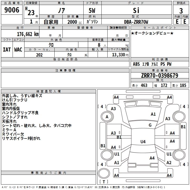 TOYOTA NOAH 2011 г., лот № 9006