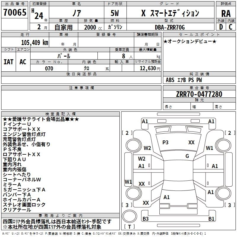 TOYOTA NOAH 2012 г., лот № 70065