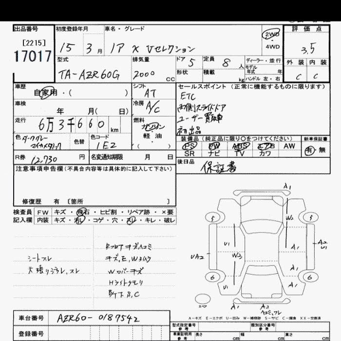 | X V SELECTION | TA-AZR60G | 1AZ-FSE(D-4) | FF | 4AT | 1998cc | 152ps(112kW)/6000rpm | AИ-92 | 2 027 000 | |