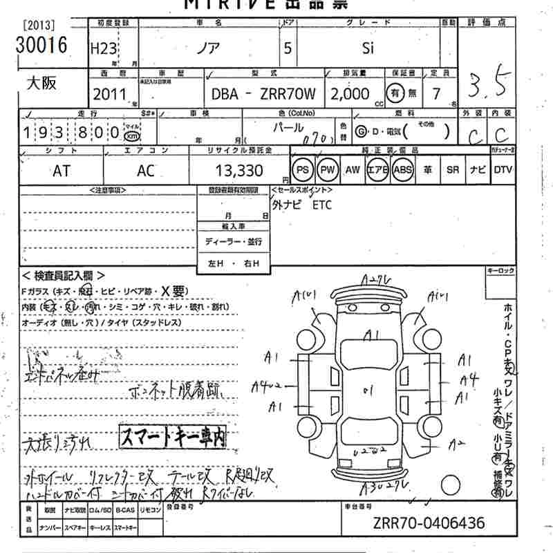 TOYOTA NOAH 2011 г., лот № 30016