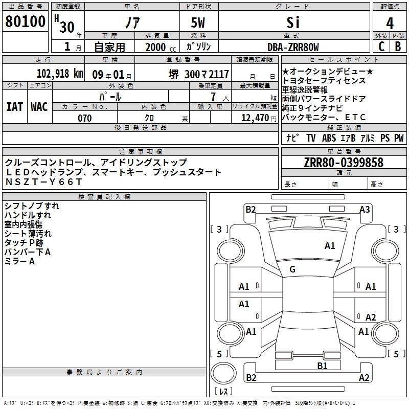 TOYOTA NOAH 2018 г., лот № 80100