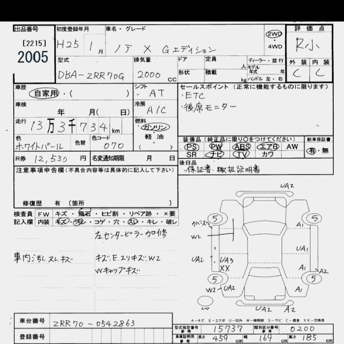 TOYOTA NOAH 2013 г., лот № 2005