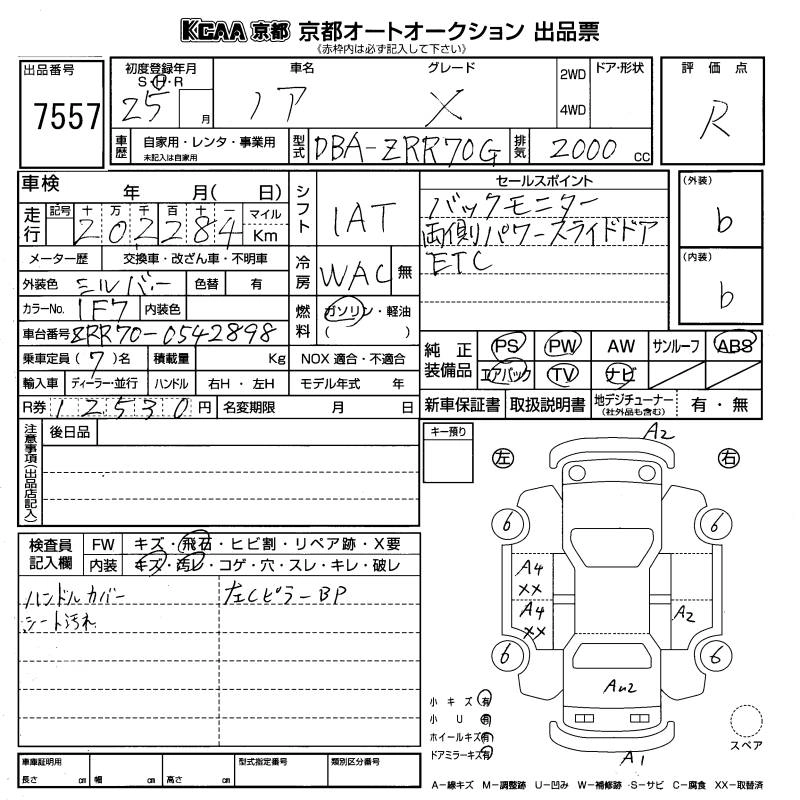 | X SPECIAL EDITION | DBA-ZRR70G | 3ZR-FAE | FF | CVT | 1986cc | 158ps(116kW)/6200rpm | AИ-92 | 2 290 000 |