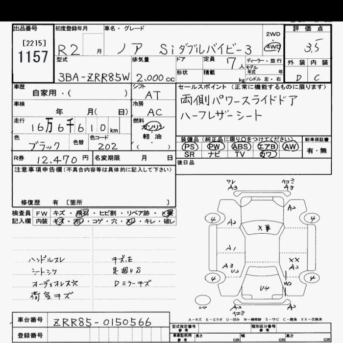 | X | 3BA-ZRR85G | 3ZR-FAE | Full-time 4WD | CVT | 1986cc | 152ps(112kW)/6100rpm | AИ-92 | 2 901 000 | |
