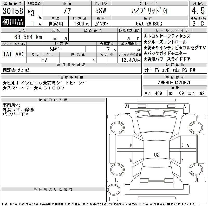 TOYOTA NOAH 2021 г., лот № 30158
