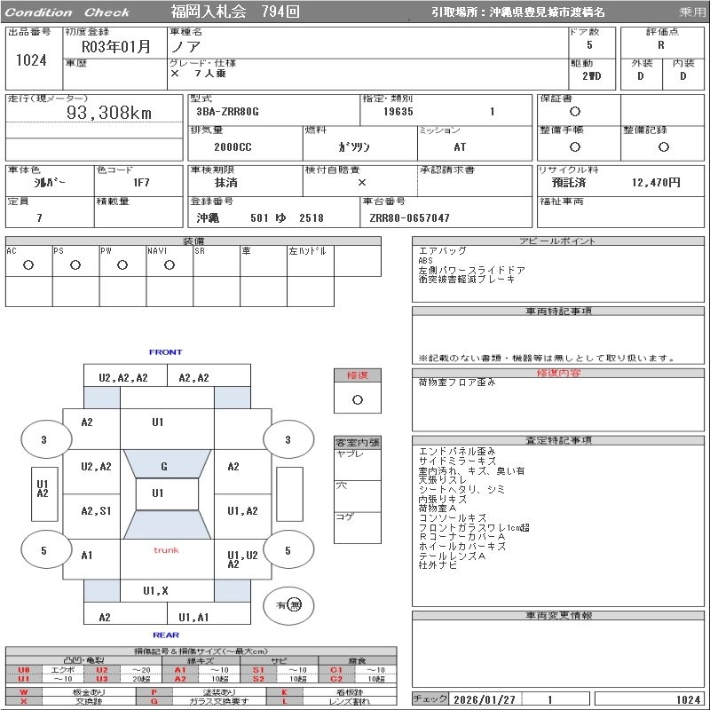 Статус выставлен на аукцион Лот 1024 Аукцион ORIX Fukuoka Дата аукциона 03.02.2026