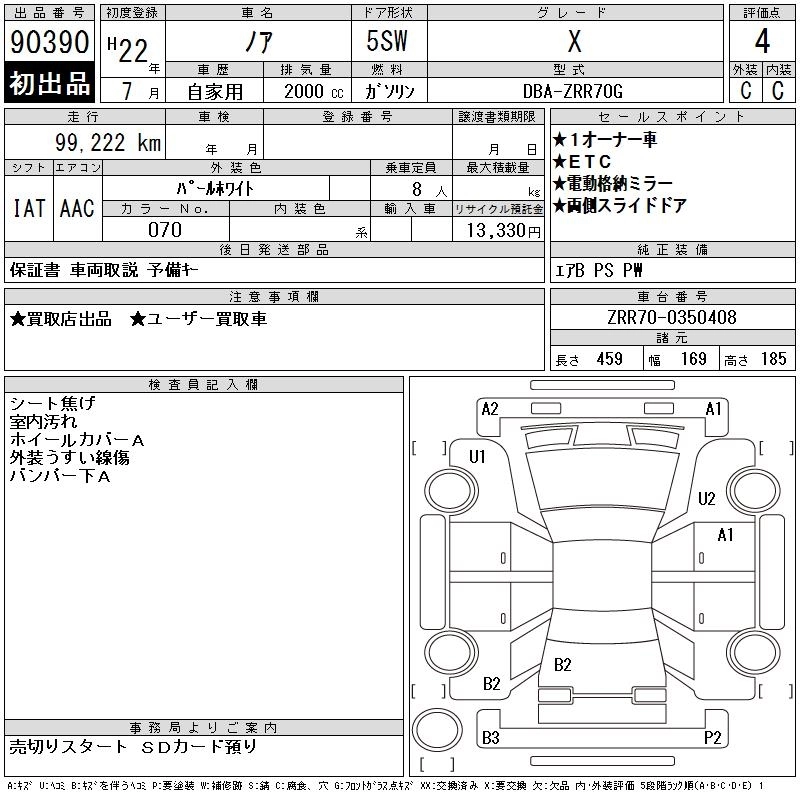 | X | DBA-ZRR70G | 3ZR-FAE | FF | CVT | 1986cc | 158ps(116kW)/6200rpm | AИ-92 | 2 090 000 | |