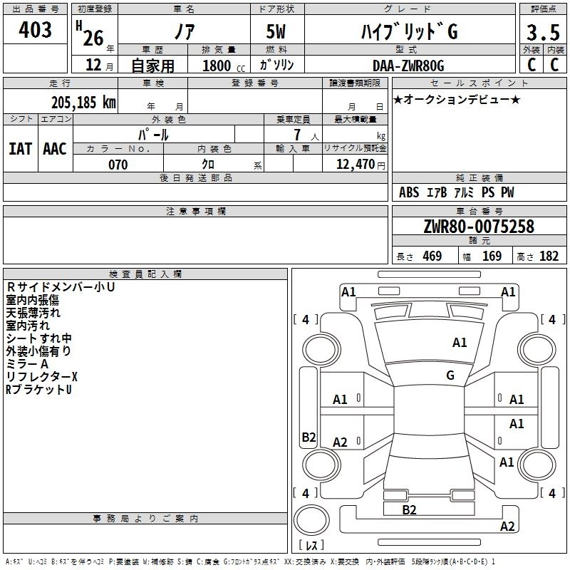| X | DBA-ZRR80G | 3ZR-FAE | FF | CVT | 1986cc | 152ps(112kW)/6100rpm | AИ-92 | 2 370 000 | |
