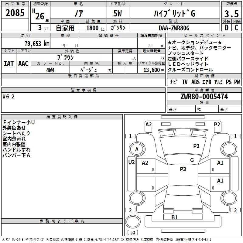 G DBA-ZRR80G 3ZR-FAE FF CVT 1986cc 152ps(112kW)/6100rpm AИ-92 2 600 000