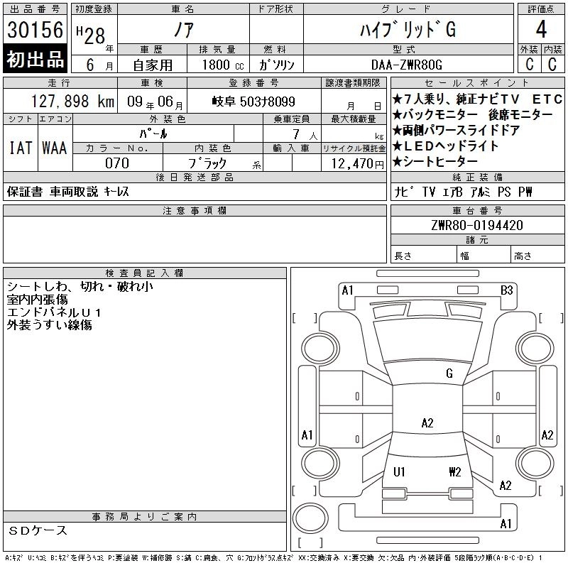| SI W。゚B | DBA-ZRR80W | 3ZR-FAE | FF | CVT | 1986cc | 152ps(112kW)/6100rpm | AИ-92 | 2 800 440 |