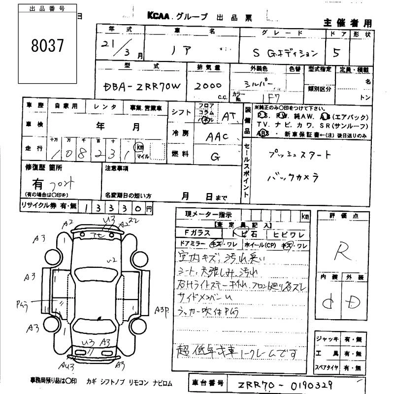 | X SMART EDITION | DBA-ZRR75G | 3ZR-FE | Full-time 4WD | CVT | 1986cc | 140ps(103kW)/5600rpm | AИ-92 | 2 478 000 | |