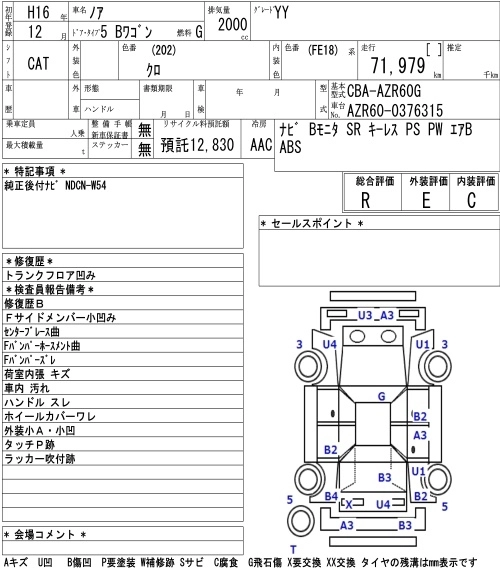 | S V SELECTION | TA-AZR60G | 1AZ-FSE(D-4) | FF | 4AT | 1998cc | 152ps(112kW)/6000rpm | AИ-92 | 2 406 600 | |