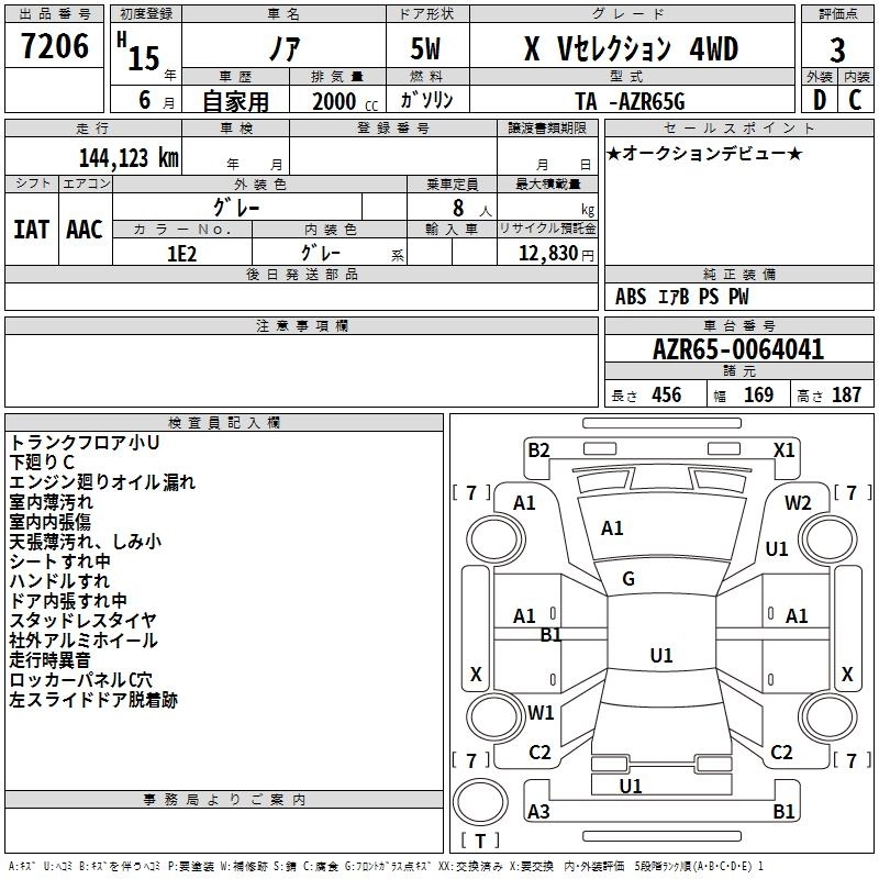 | X V SELECTION | TA-AZR60G | 1AZ-FSE(D-4) | FF | 4AT | 1998cc | 152ps(112kW)/6000rpm | AИ-92 | 2 027 000 | |