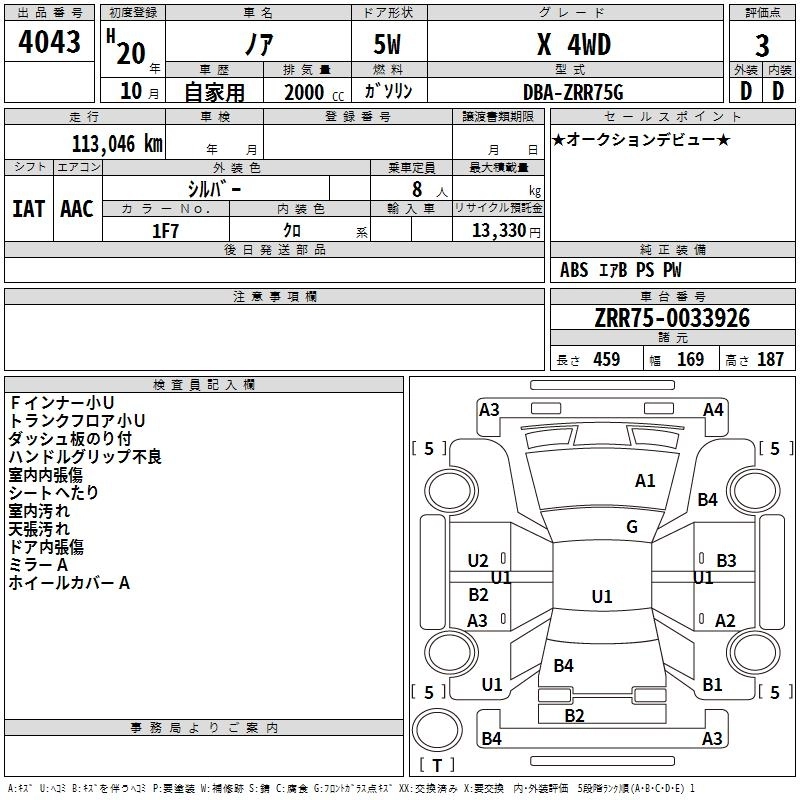 TOYOTA NOAH 2008 г., лот № 4043