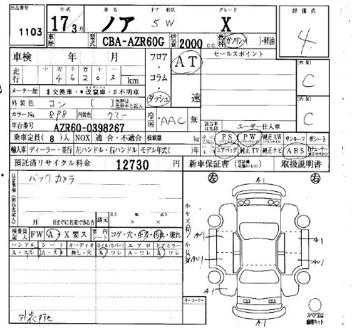| X | DBA-AZR65G | 1AZ-FSE(D-4) | Full-time 4WD | CVT | 1998cc | 155ps(114kW)/6000rpm | AИ-92 | 2 331 000 | |