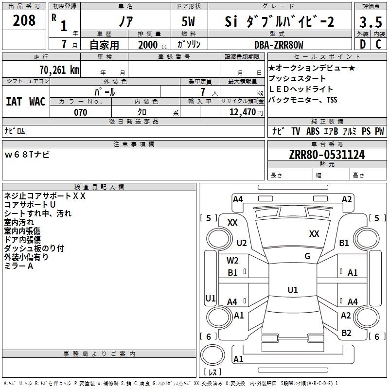 | SI W。゚B II | DBA-ZRR80W | 3ZR-FAE | FF | CVT | 1986cc | 152ps(112kW)/6100rpm | AИ-92 | 2 856 600 | |