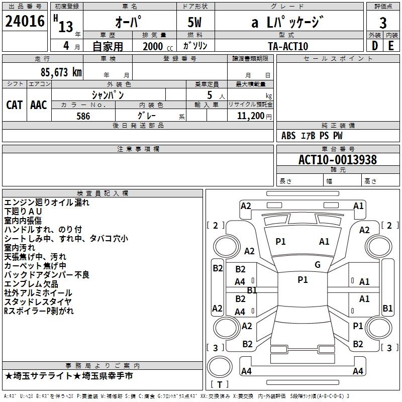 | A L PACKAGE | TA-ZCT10 | 1ZZ-FE | FF | 4AT | 1794cc | 136ps(100kW)/6000rpm | AИ-92 | 1 795 000 | |