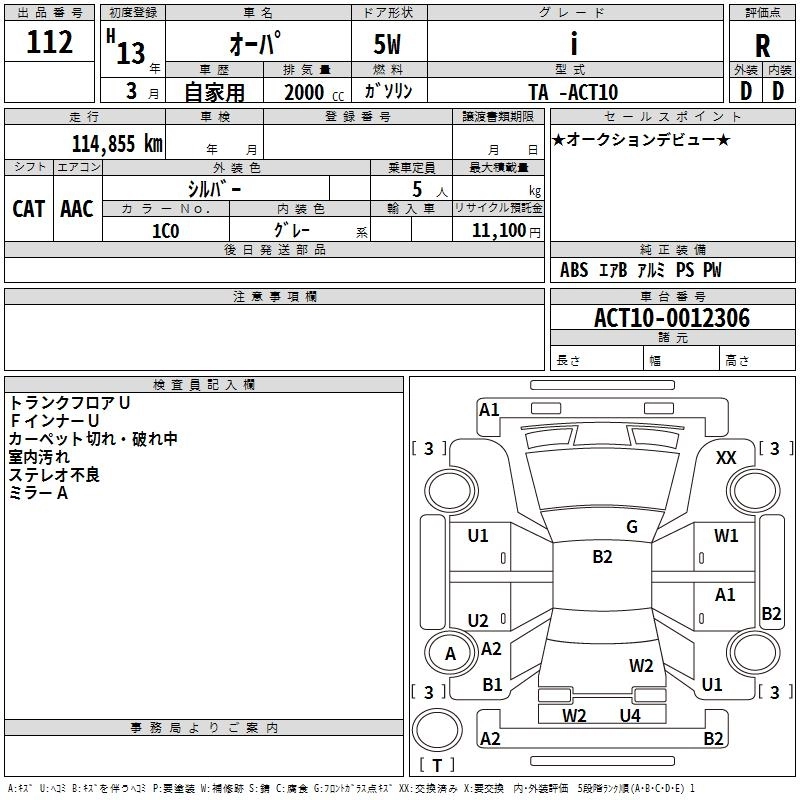 | AERO TOURER S PACKAGE | TA-ACT10 | 1AZ-FSE(D-4) | FF | CVT | 1998cc | 152ps(112kW)/6000rpm | AИ-92 | 2 363 000 | |