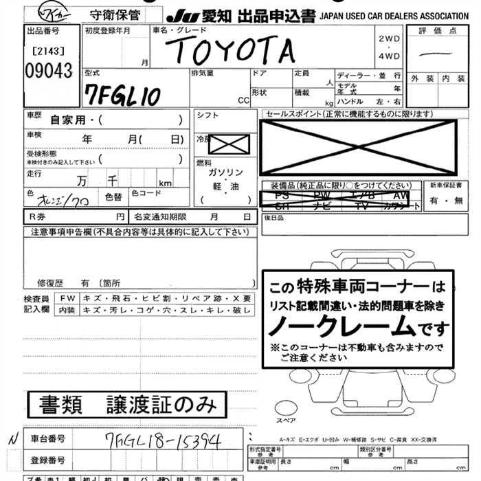 Статус выставлен на аукцион Лот 9043 Аукцион JU Aichi Дата аукциона 29.01.2026