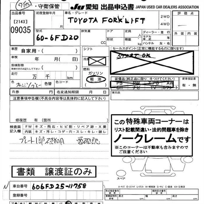 Кузов60-6FD20 Комплектация FORKLIFT