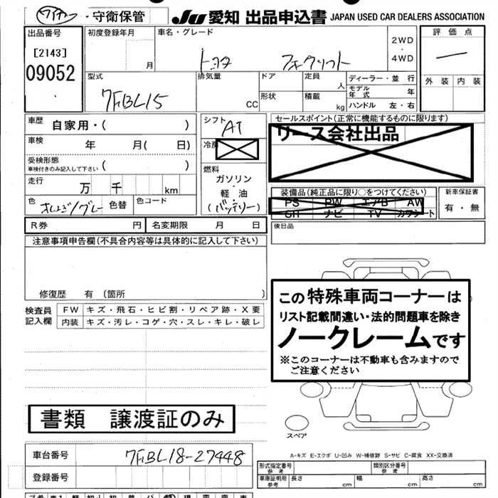 Статус выставлен на аукцион Лот 9052 Аукцион JU Aichi Дата аукциона 29.01.2026
