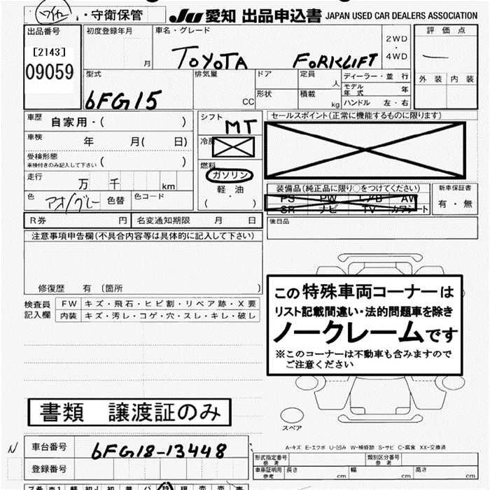 Кузов6FG15 Комплектация FORKLIFT