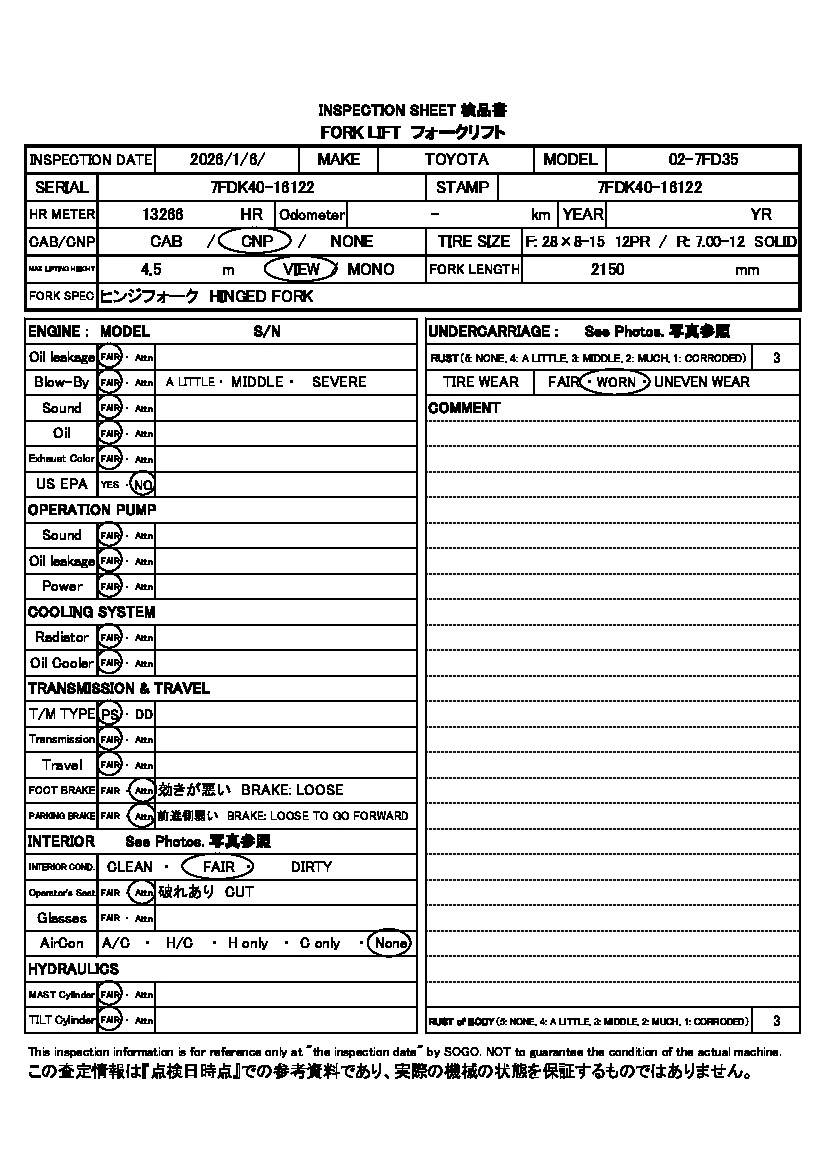 Год выпуска2006 Кузов02-7FD35 Комплектация FORKLIFT