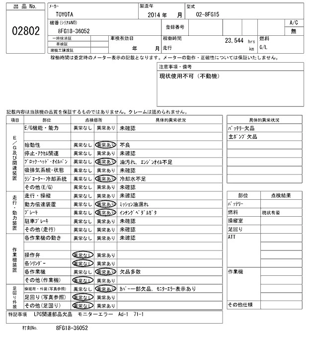 Статус выставлен на аукцион Лот 2802 Аукцион ARAI Kenki Дата аукциона 03.02.2026