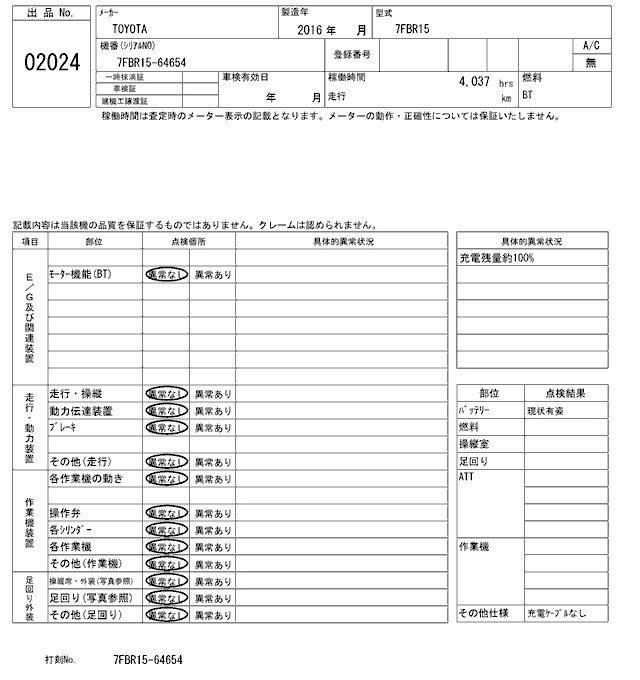 Статус выставлен на аукцион Лот 2024 Аукцион ARAI Kenki Дата аукциона 03.02.2026