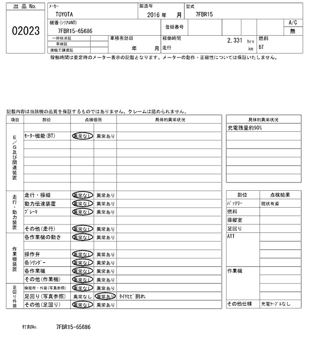 Год выпуска2016 Пробег 2 000 км Кузов7FBR15 КомплектацияLI-CHI FORKLIFT