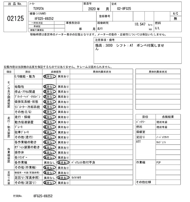 Год выпуска2020 Пробег 11 000 км Кузов02-8FG25 Комплектация FORKLIFT