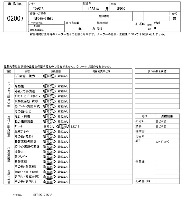 Год выпуска1988 Пробег 4 000 км Кузов5FD20 Комплектация FORKLIFT