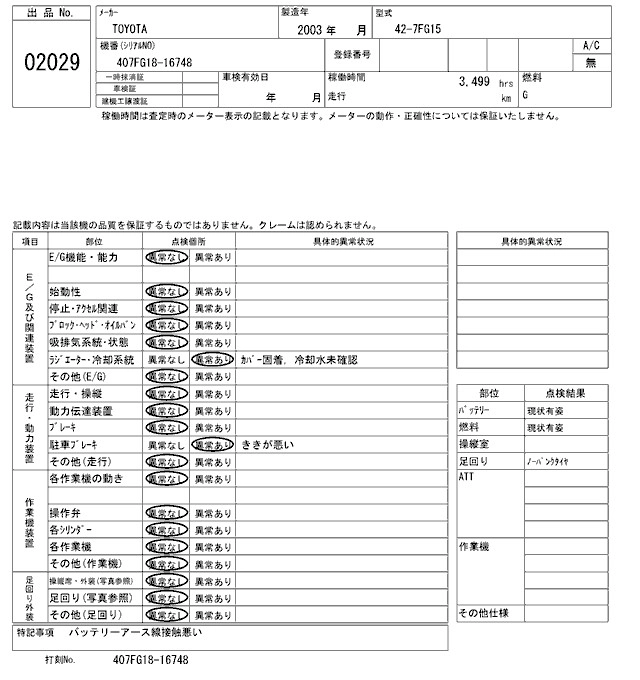 Год выпуска2003 Пробег 3 000 км Кузов42-7FG15 Комплектация FORKLIFT