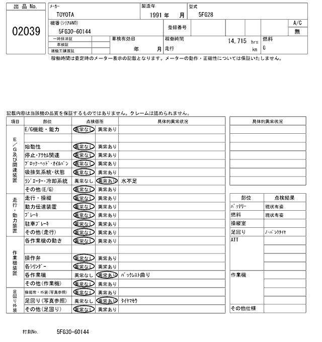 Год выпуска1991 Пробег 15 000 км Кузов5FG28 Комплектация FORKLIFT